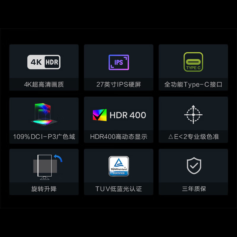 海信27英寸4K超清 IPS 100%sRGB HDR400 Type-C接口 10bit 旋转升降 电脑办公设计显示器显示屏27N5H价格:1699.00元!