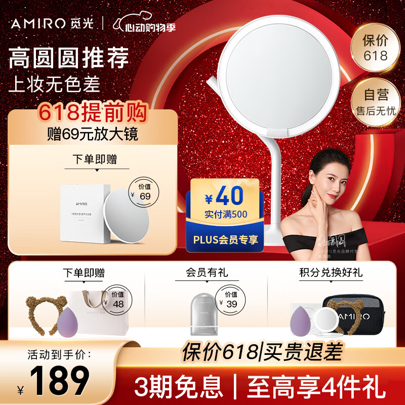AMIRO觅光化妆镜带灯led日光智能梳妆化妆镜子补光桌面 520情人节生日礼物女生礼物实用送老婆价格:239.00元!