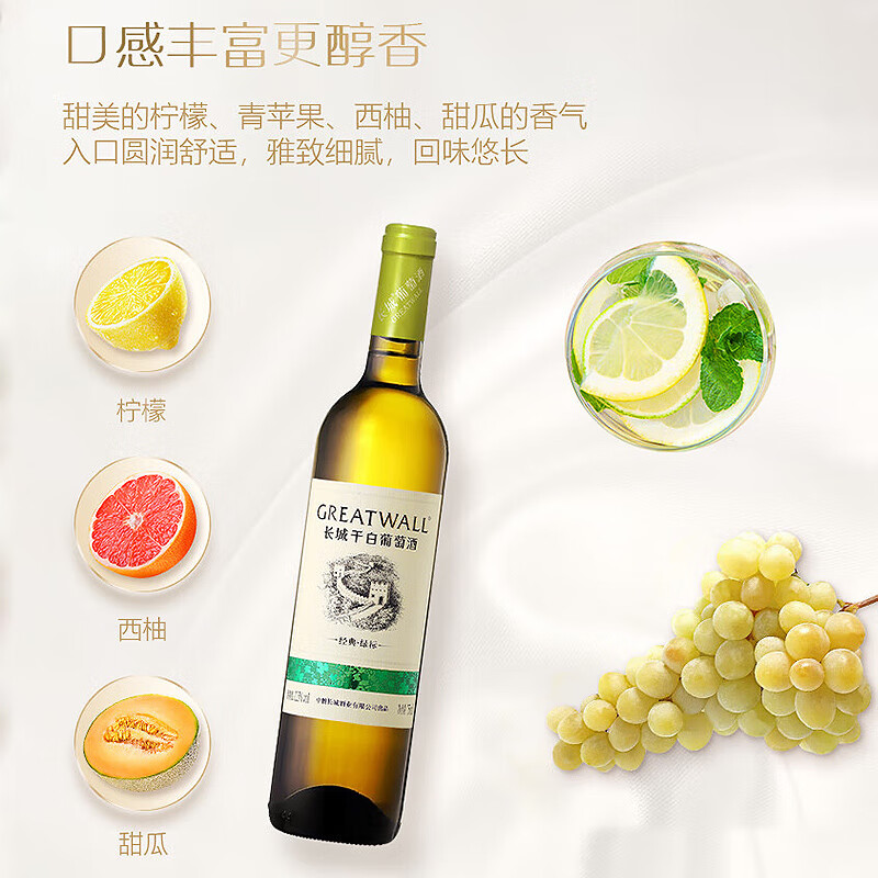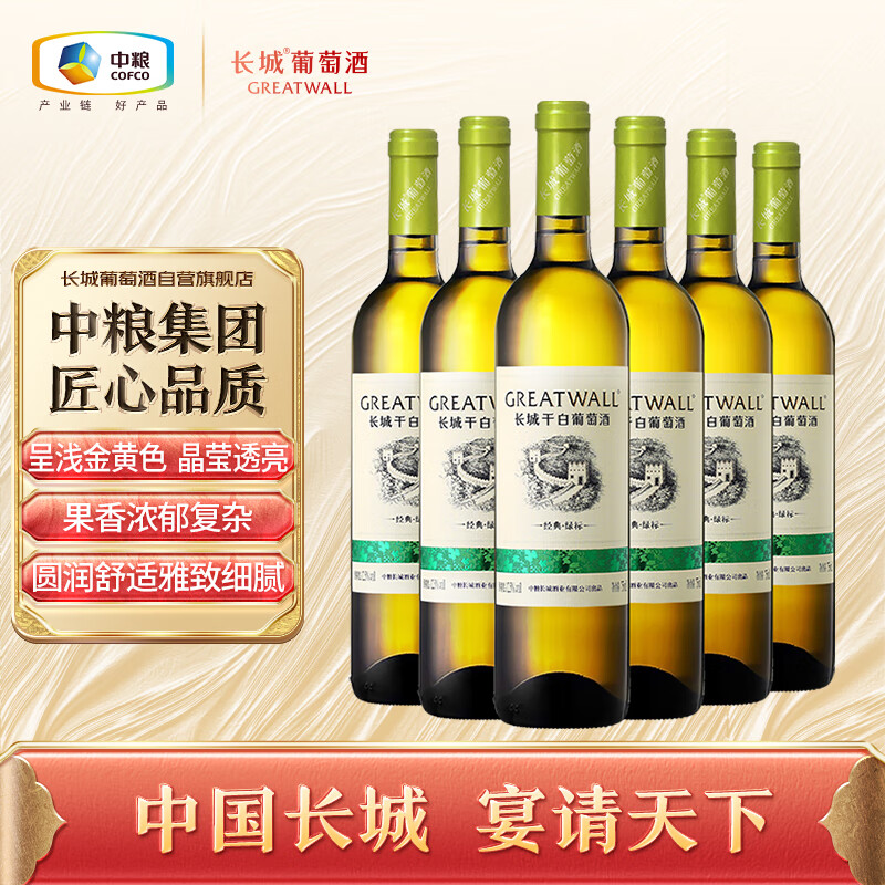 长城 经典系列 绿标霞多丽干白葡萄酒 750ml*6瓶 整箱装价格:198.00元!