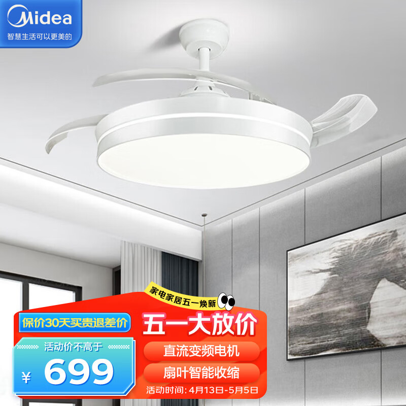 美的(Midea)美的(Midea)风扇变频轻音42吋吊扇灯餐厅客厅LED遥控3色可收缩扇叶正反转FC105EERL(线下同款)价格:779.00元!