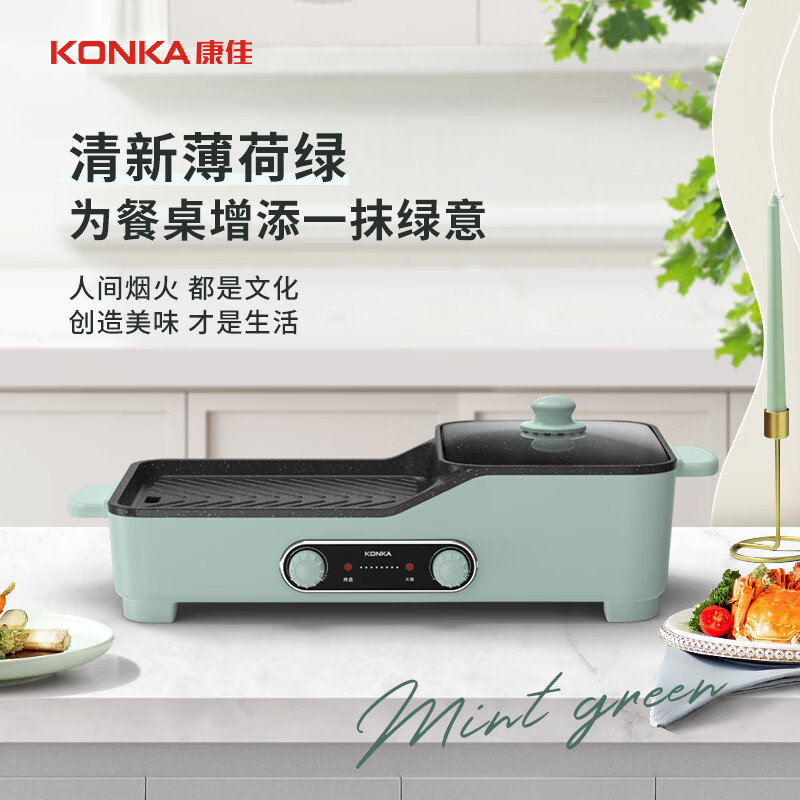 康佳(KONKA)电烧烤炉家用无烟电火锅烤肉串电烤盘 多功能烧烤机电烤炉烤串机烤涮一体锅烤 KEG-W2306价格:169.00元!