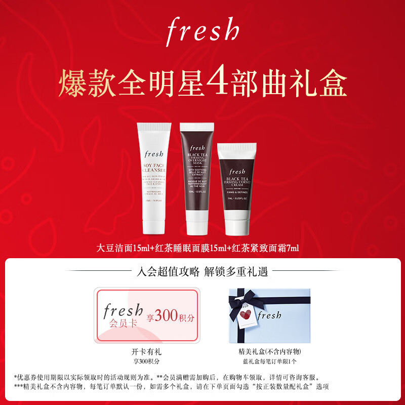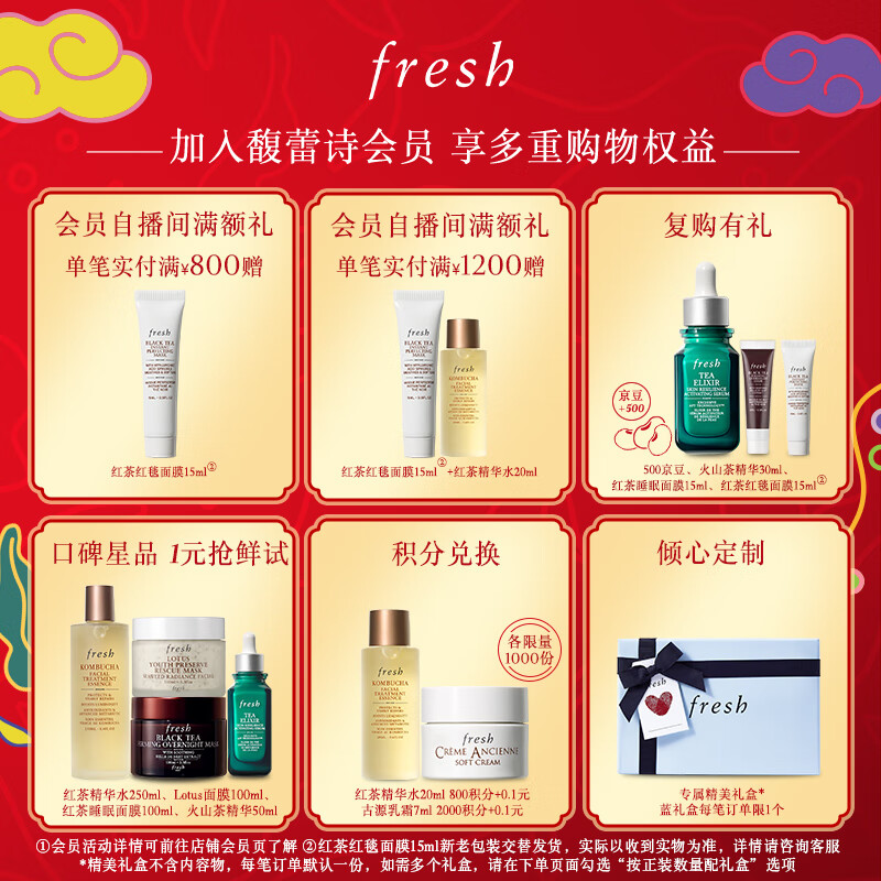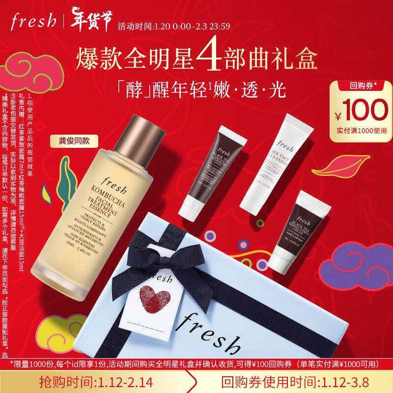 Fresh【龚俊同款】馥蕾诗红茶酵母酵萃精华50ml全明星4件套新年价格:380.00元!