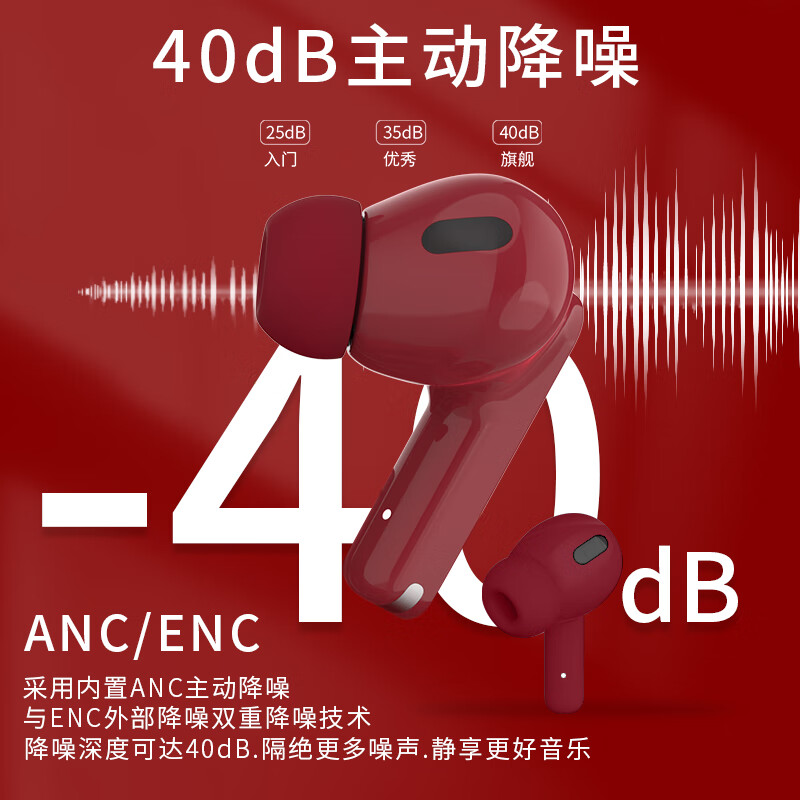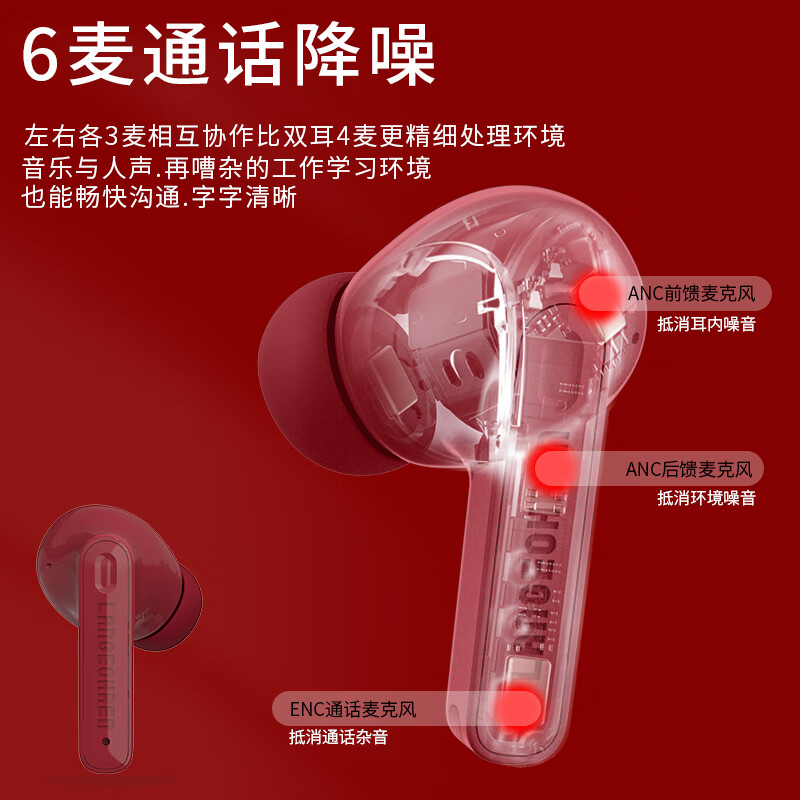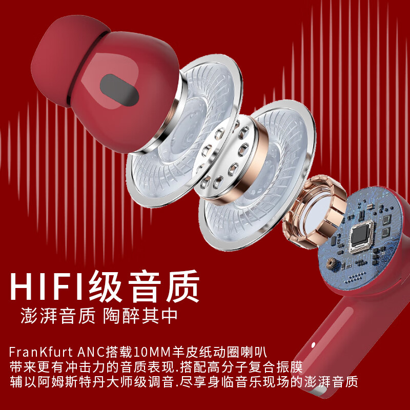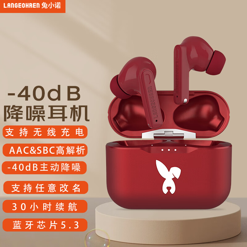 兔小诺(LANGEOHREN)主动降噪 入耳式真无线蓝牙耳机 通话降噪 通用苹果华为小米手机 Frankfurt ANC 幸运红价格:215.00元!