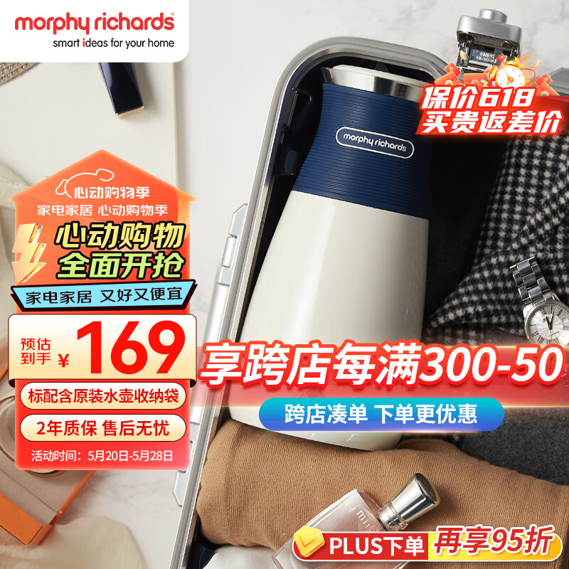 摩飞电器(Morphyrichards)电水壶烧水壶便携式家用旅行电热水壶随行冲奶泡茶办公室养生保温杯MR6090蓝色价格:169.00元!