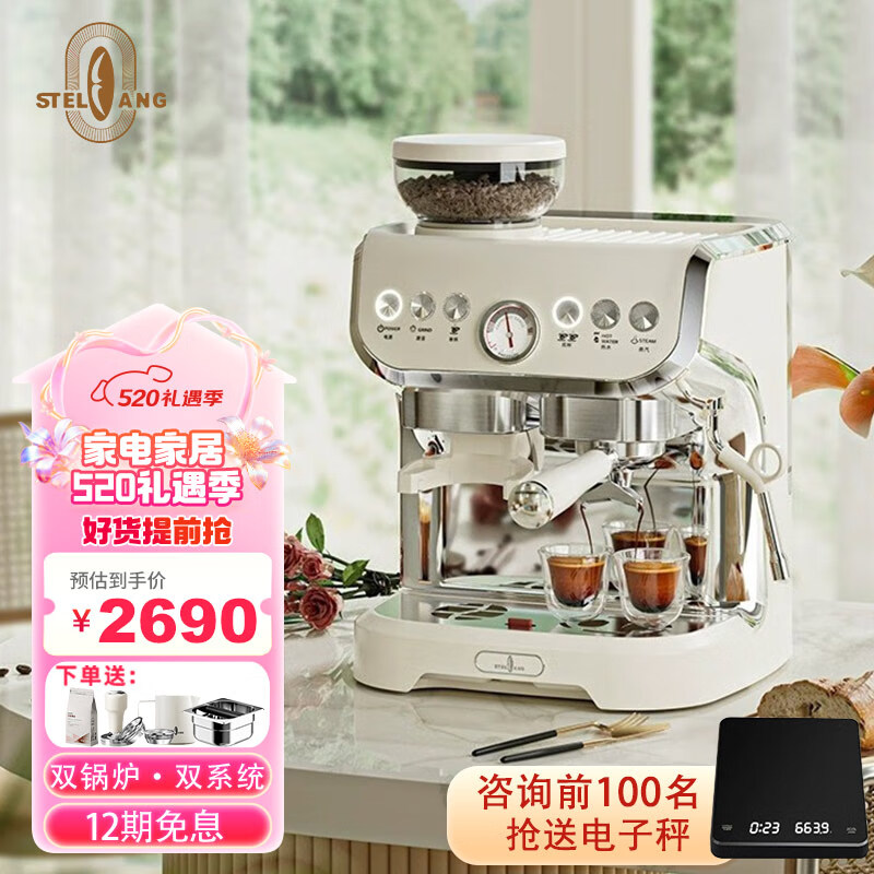 雪特朗 双锅炉系统意式美式半自动咖啡机磨豆机家用奶泡机研磨一体意式半自动咖啡机价格:2690.00元!