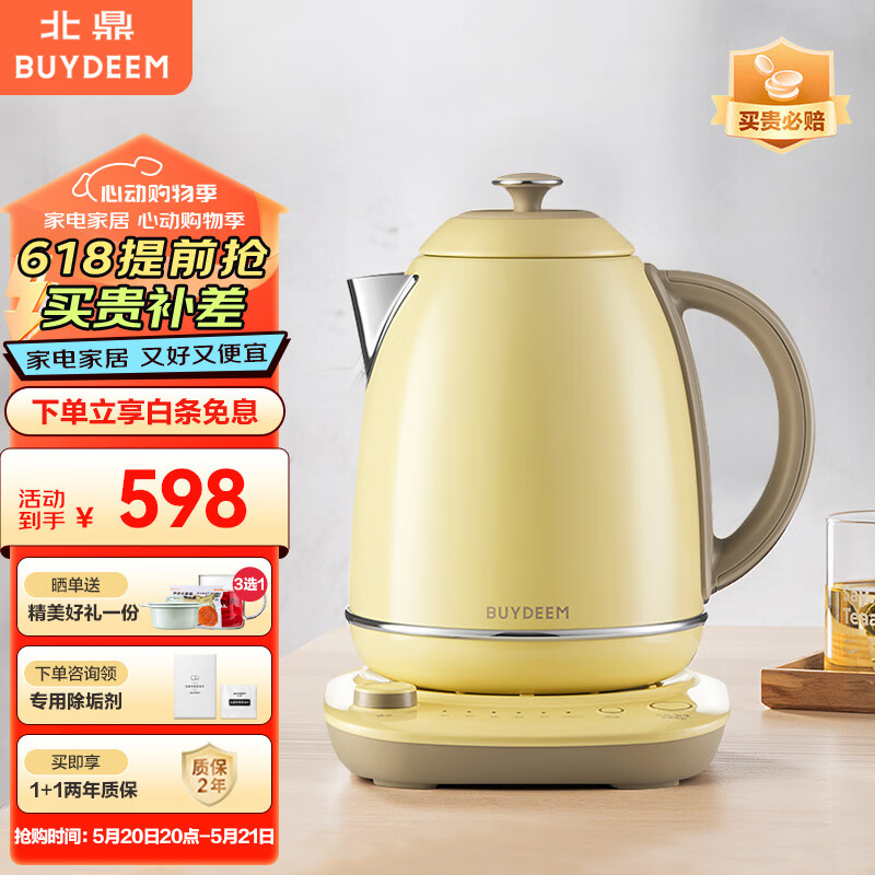 北鼎 Buydeem 炫彩304不锈钢调温电水壶 K740C小鹅黄价格:598.00元!