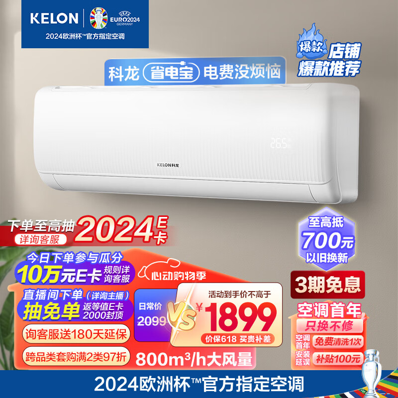 科龙(KELON)空调 大1.5匹 省电宝 新一级能效 大风量 16分贝变频省电 冷暖 壁挂式挂机 卧室 KFR-35GW/QS1-X1价格:1899.00元!
