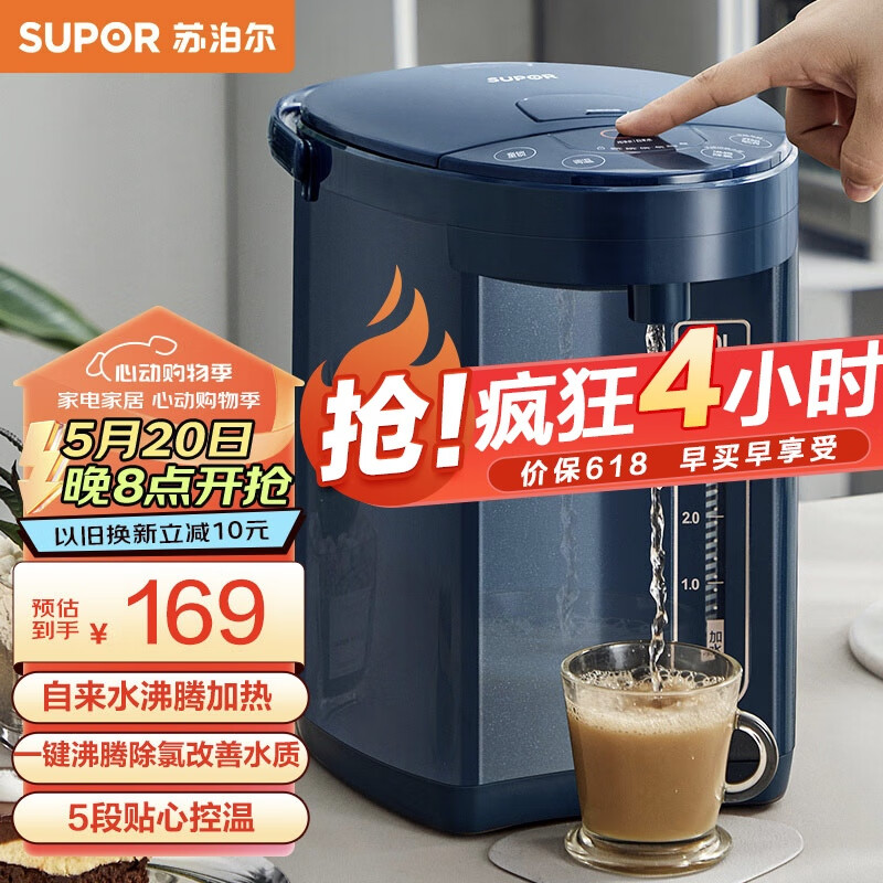 苏泊尔(SUPOR)电热水瓶 双层电热水壶烧水壶 5L大容量电水瓶 多段保温恒温电水壶 304不锈钢 SW-50J66A价格:169.00元!