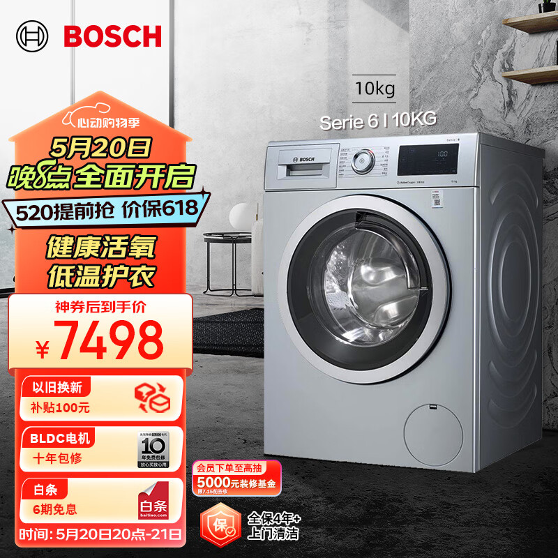博世(BOSCH)【健康活氧】6系10KG全自动家用变频大容量1400转 高效智能除菌除螨祛味滚筒洗衣机WGA354B80W价格:8298.00元!