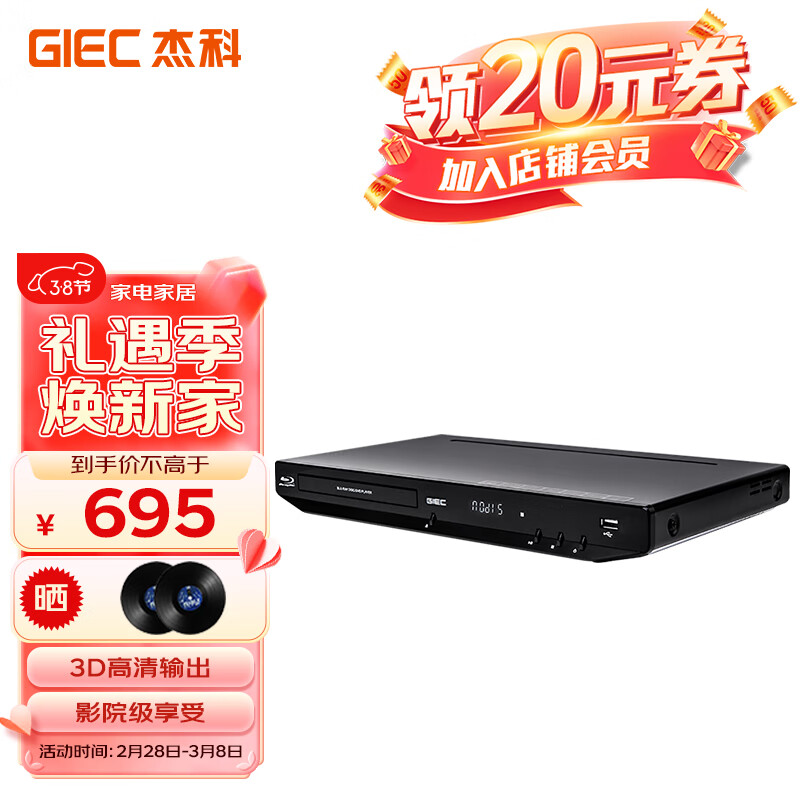 杰科BDP-G3606 3D蓝光播放机 高清DVD影碟机 CD播放机 EVD家用VCD光盘硬盘U盘播放器 家用家庭影院播放价格:775.00元!