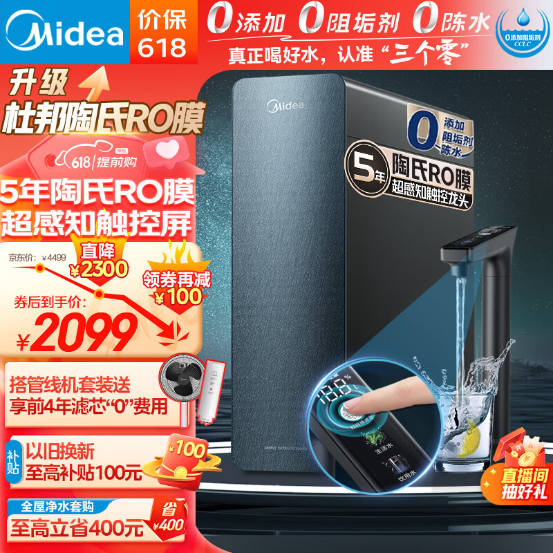 美的净水器家用净水机星河1000G PRO 5年长效陶氏RO反渗透净水器厨下式直饮机 鲜活零陈水智能触控屏价格:2199.00元!