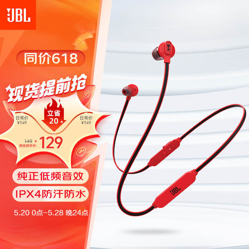 JBL C135BT 无线蓝牙耳机 入耳式带麦通话 跑步运动颈挂式磁吸收纳 通用苹果安卓手机 青春红价格:149.00元!