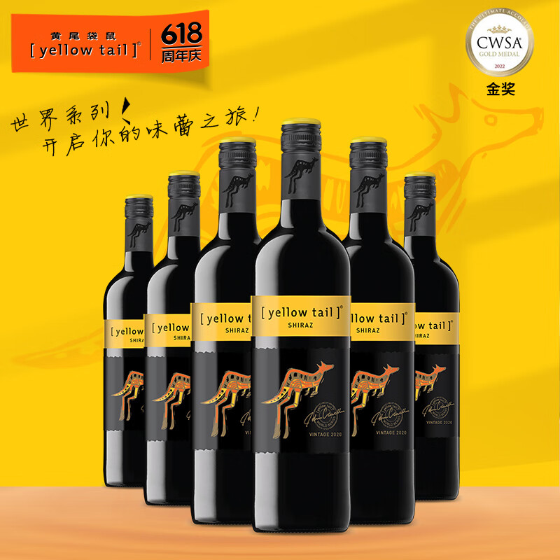 黄尾袋鼠(Yellow Tail)系列红酒 西拉红葡萄酒 750ml*6 整箱装价格:328.00元!