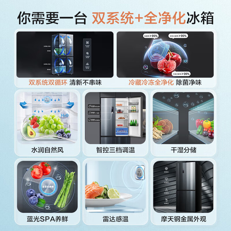 容声(Ronshen)蓝光养鲜516升变频一级能效十字对开门四开门冰箱家用无霜嵌入式BCD-516WD13FPA双循环大容量价格:4199.00元!