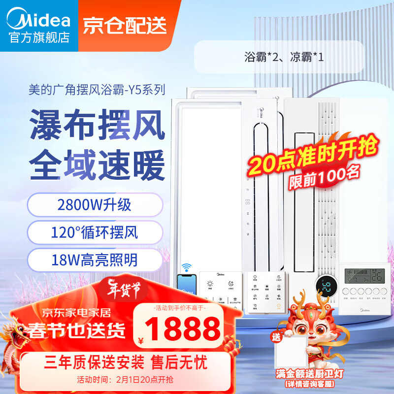 美的(Midea)浴霸瀑布摆风全域速暖浴室取暖器卫生间暖风机灯集成吊顶智控款价格:1985.00元!