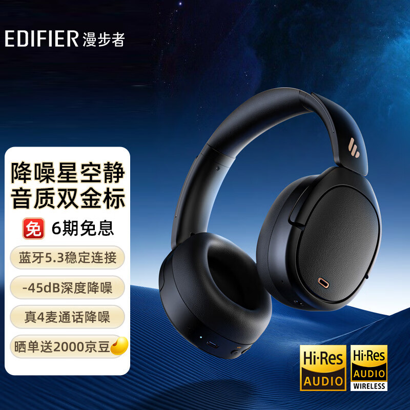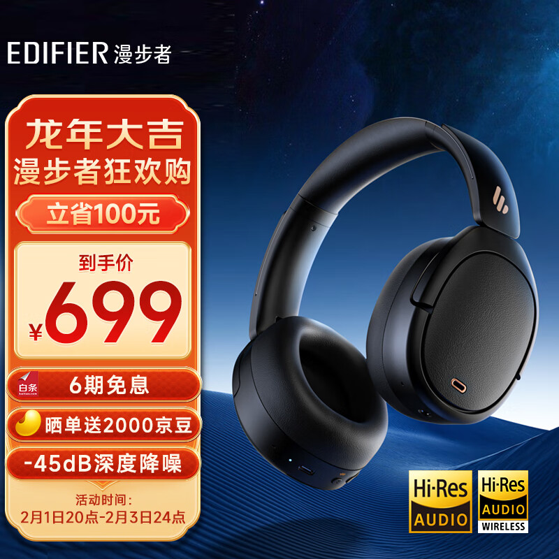 漫步者(EDIFIER)W860NB Pro头戴式主动降噪蓝牙耳机 蓝牙5.3 双金标认证 手机电脑笔记本耳机 黑 新年礼物价格:699.00元!