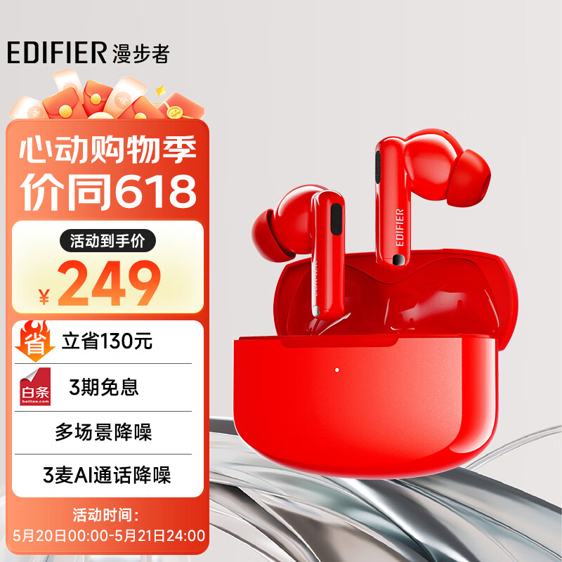 漫步者(EDIFIER)Lolli Pro2 真无线主动降噪蓝牙耳机 金标认证 蓝牙5.3 适用苹果华为小米 红色价格:249.00元!