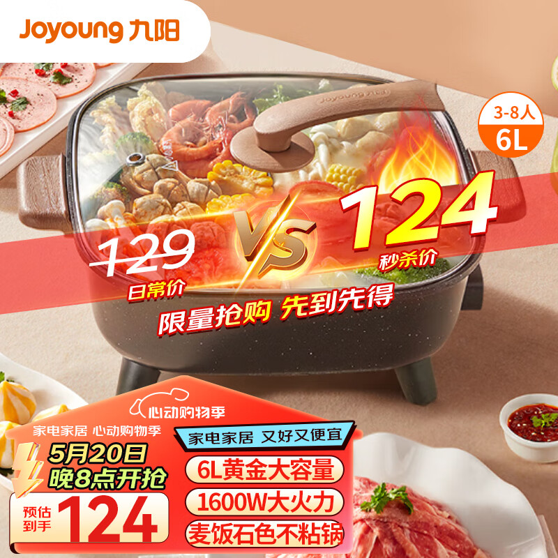 九阳(Joyoung)电火锅家用多功能电热锅电煮锅麦饭石色鸳鸯可选火锅 HG60-G190【6升麦饭石鸳鸯锅】价格:124.00元!