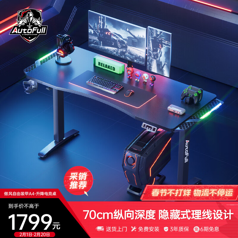 傲风A4电竞桌椅套装 电动升降 电脑桌游戏桌家用办公书桌 1.6m桌面价格:1999.00元!