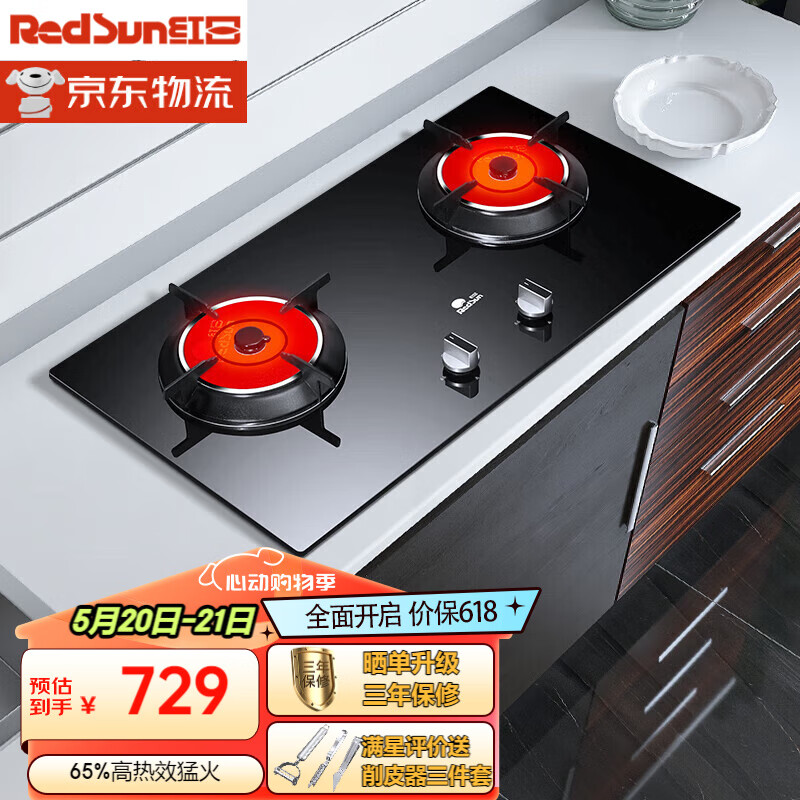 红日(Redsun)红外线燃气灶 液化气灶台嵌两用 高热效率 一级能效 防爆钢化玻璃JZY-EM308B(液化气)价格:729.00元!