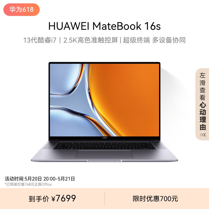 华为MateBook 16s 笔记本电脑 13代酷睿标压处理器/2.5K高色准触控屏/轻薄办公本 i7 32G 1T 深空灰价格:7694.00元!