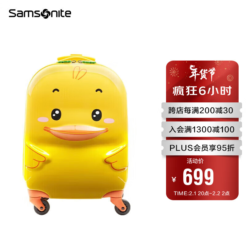 新秀丽(Samsonite)行李箱儿童旅行箱拉杆箱时尚萌趣U22*26122登机箱小黄鸭16英寸价格:699.00元!