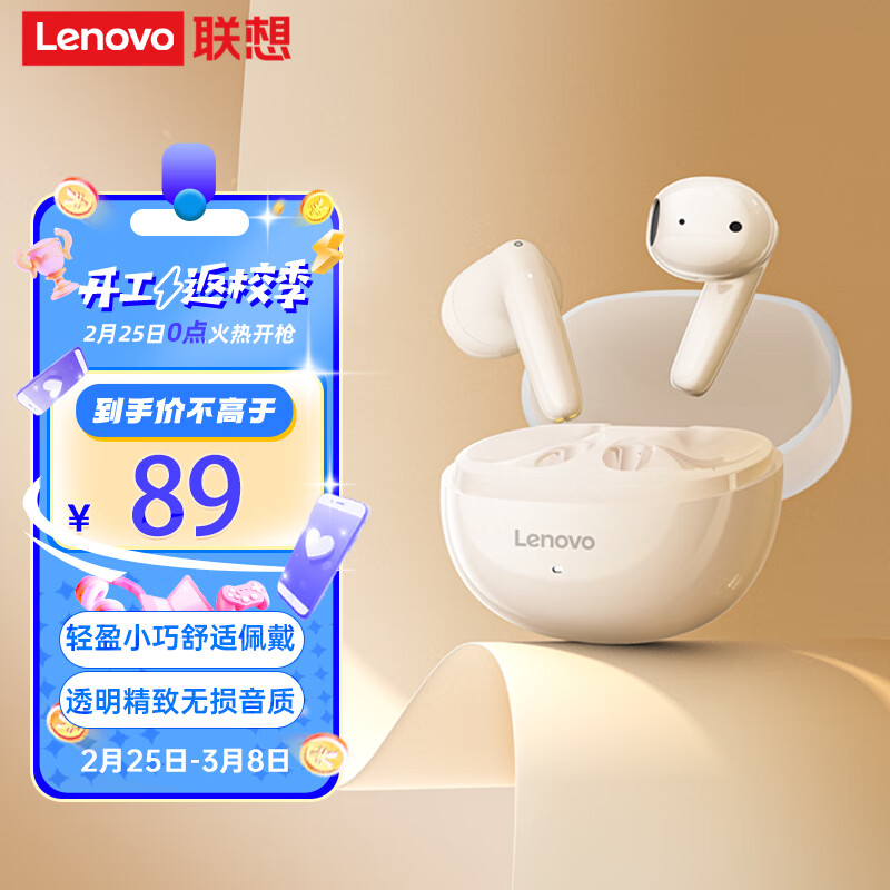 联想(lenovo)蓝牙耳机真无线 半入耳舒适佩戴 蓝牙5.3游戏运动音乐耳机适用于苹果华为小米手机TC3309白色价格:109.00元!