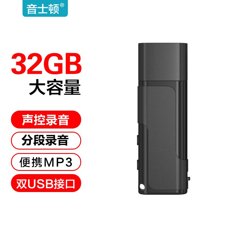 音士顿(yescool)C1 大容量录音笔多功能U盘声控高清降噪MP3音乐播放器 32GB 黑色价格:109.00元!