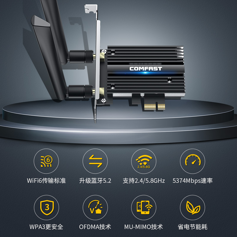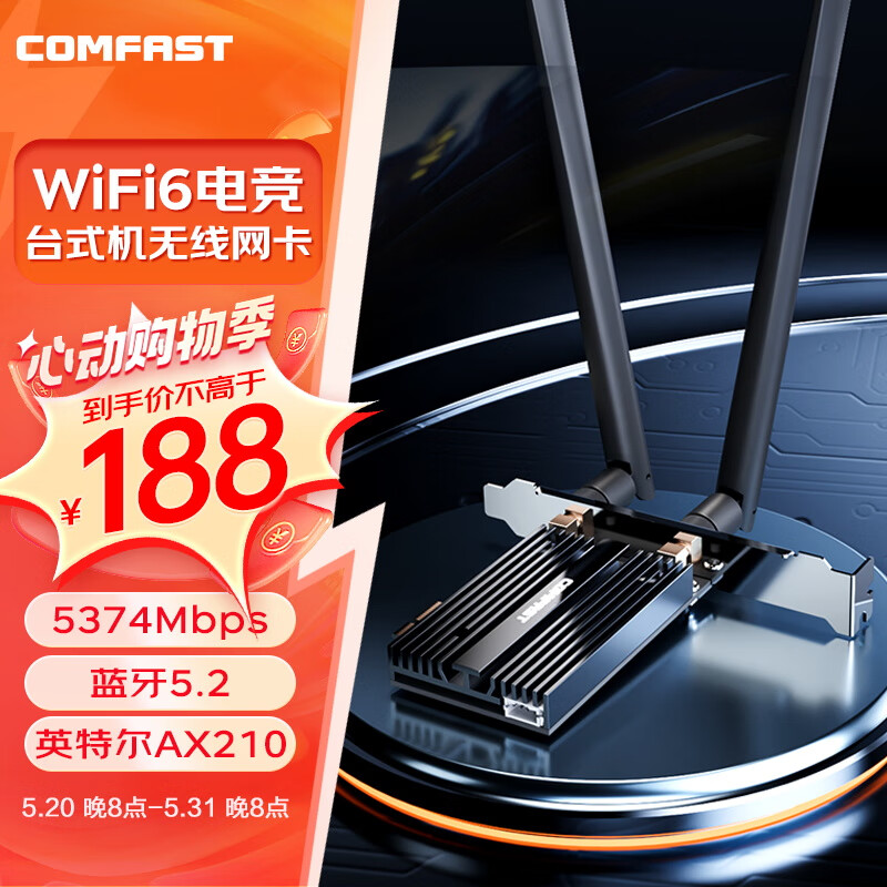 COMFAST CF-AX210 PRO 千兆5G无线网络wifi接收器台式机电脑内置WIFI6无线网卡5374M+蓝牙5.2二合一价格:198.00元!