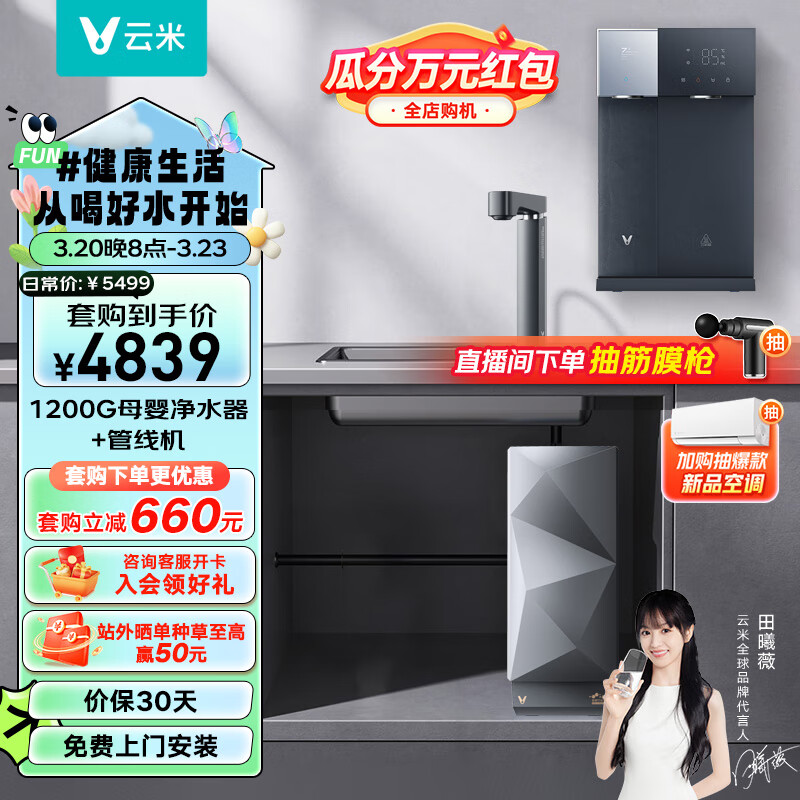 云米(VIOMI)Super 2 1200G全屋净水套装净水器+冷热管线机Master 3两件套家用直饮加热即热净水器净水机价格:5499.00元!