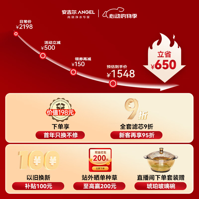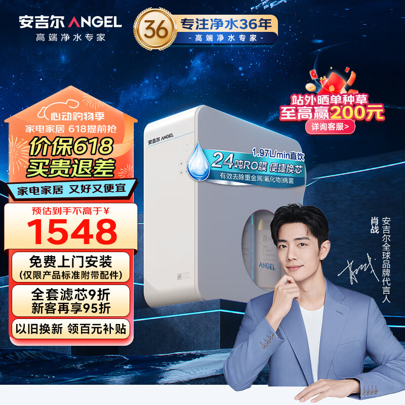 安吉尔【肖战代言】净水器家用魔方Pro1900升级1.97/分直饮长效RO反渗透无桶厨下式纯水机J3472-ROB90价格:1698.00元!