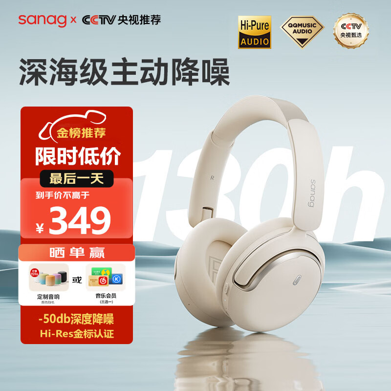 SANAG塞那【央视甄选丨QQ音乐认证】D50头戴式耳机无线蓝牙耳机 主动降噪高音质包耳式音乐耳机高端礼物价格:399.00元!