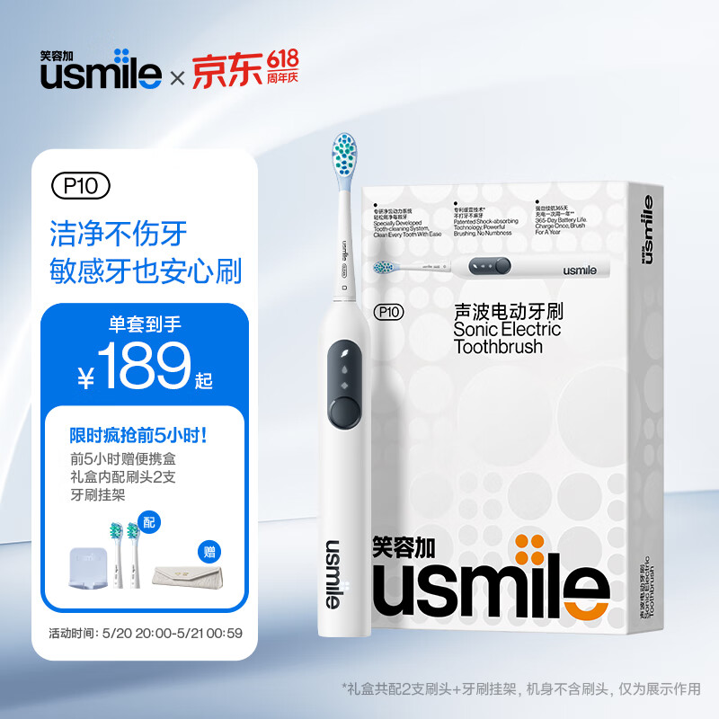 usmile笑容加电动牙刷 成人情侣款礼物送男友/女友 全新缓震清洁刷头 P10昆仑白 520情人节礼物价格:185.00元!
