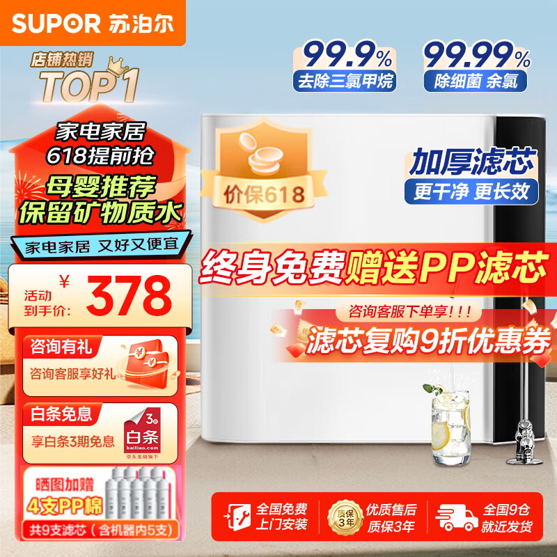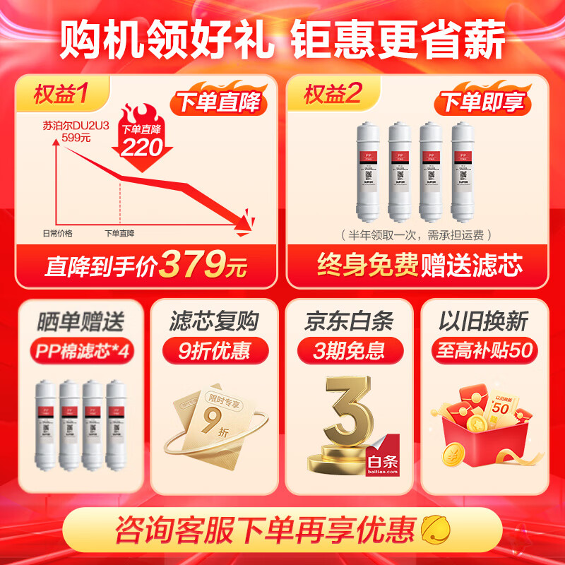 苏泊尔(SUPOR)净水器家用超滤机滤水器自来水厨下式净化器DU2U3厨房饮水水龙头台式台上台下过滤器净水机价格:378.00元!