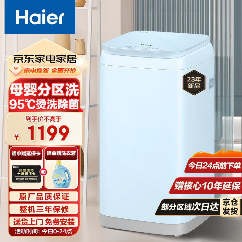 海尔(Haier)3KG波轮洗衣机全自动多功能迷你洗衣机高温除菌母婴幼儿分区洗护桶自洁洗脱一体XQBM30-R376价格:1199.00元!