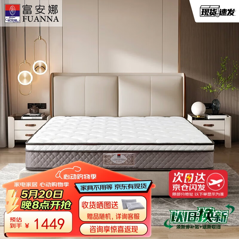 富安娜床垫 软硬适中整网弹簧抗菌防螨泰国进口乳胶床垫 1.5*1.9米 云享价格:1699.00元!