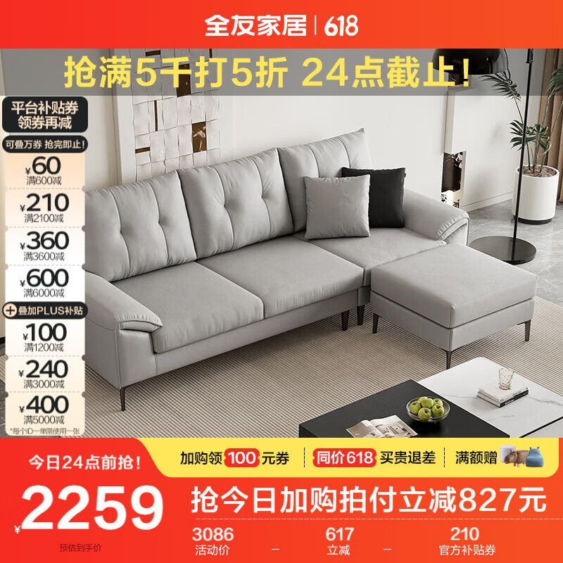 全友家居 科技布沙发客厅简约现代小户型直排式布艺沙发家用111037价格:3086.25元!