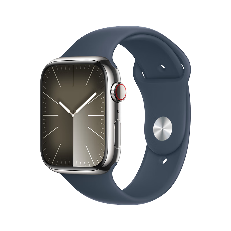 Apple/苹果 Watch Series 9 智能手表GPS+蜂窝款45毫米银色不锈钢表壳风暴蓝色运动型表带M/L MRPH3CH/A价格:6199.00元!