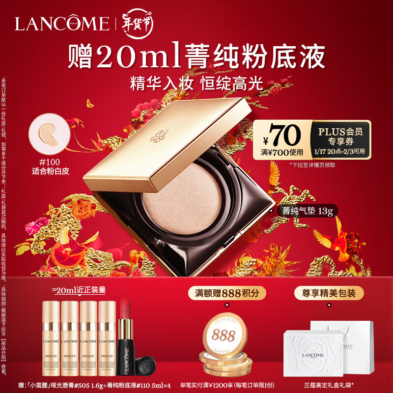 兰蔻菁纯气垫#100粉白皮 持妆服帖养肤粉底化妆品生日新年礼物送女友价格:750.00元!