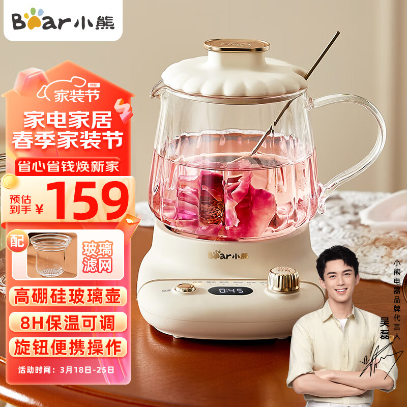 小熊(Bear)迷你养生壶养生杯 电炖杯电热杯煮花茶壶烧水壶办公室杯子0.4L全玻璃杯体YSH-E04L1价格:159.00元!