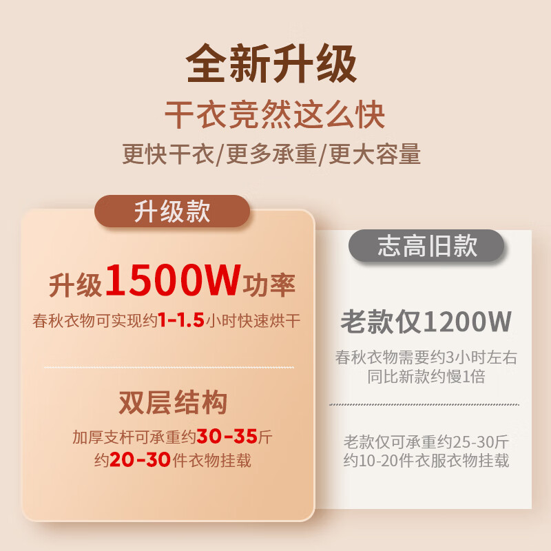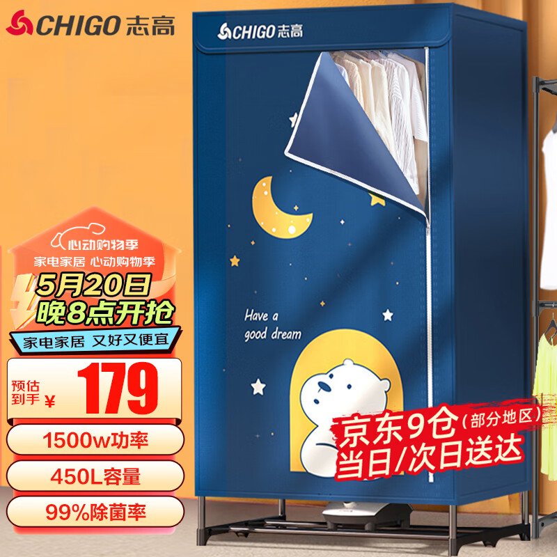志高(CHIGO)干衣机烘干机 家用衣服干衣机婴儿衣物暖风烘衣机风干机1500W大功率35斤容量可定时烘干衣柜JT16价格:221.11元!