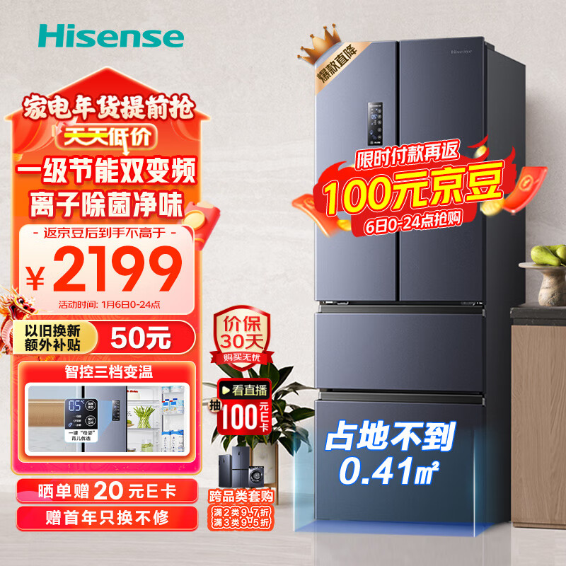 海信(Hisense)328升法式多门四开门一级能效双变频超薄母婴风冷无霜家用电冰箱BCD-328WNK1DPT除菌净味小占地价格:2399.00元!