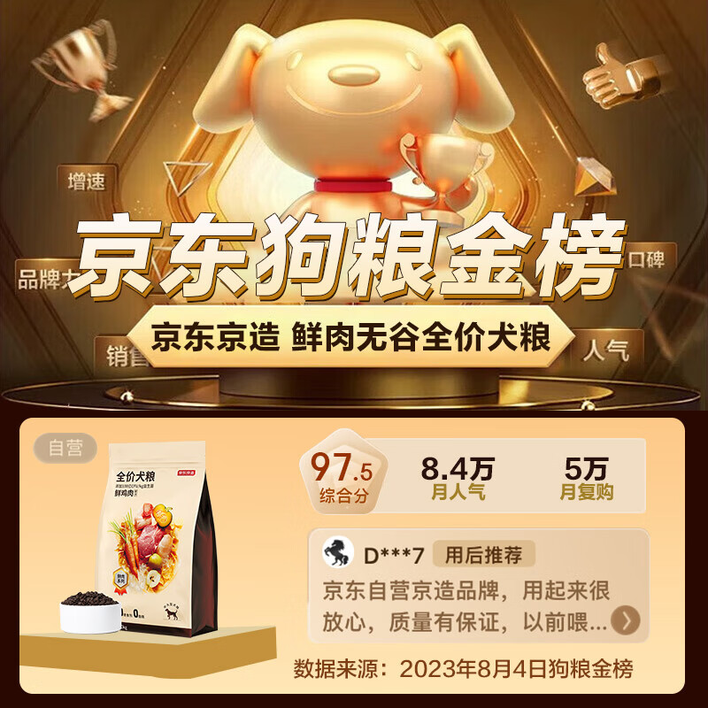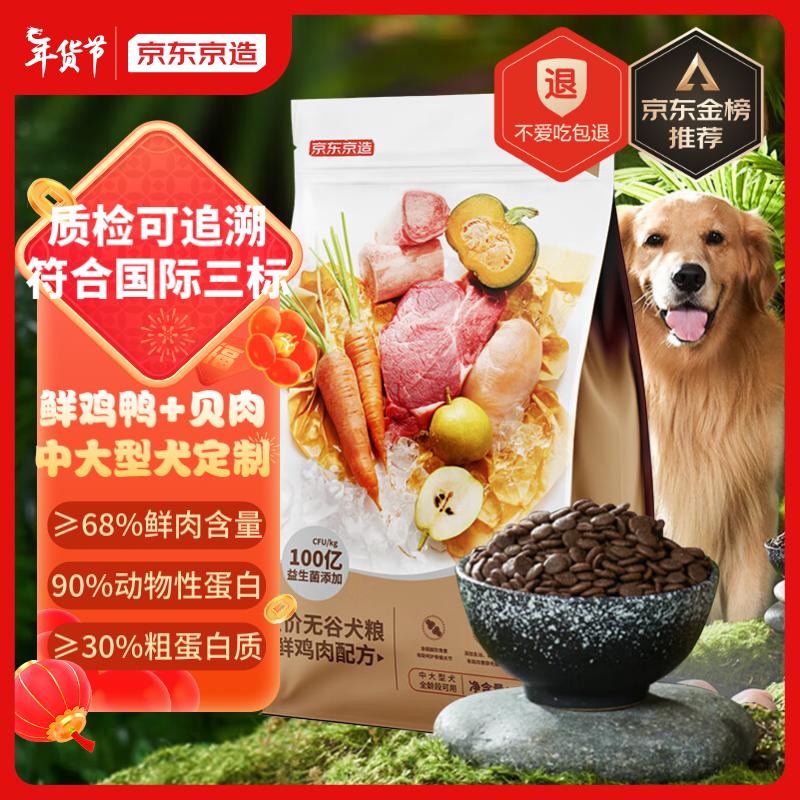 京东京造 鲜肉无谷中大型犬全价犬粮10kg新老包装随机发货通用型价格:219.90元!