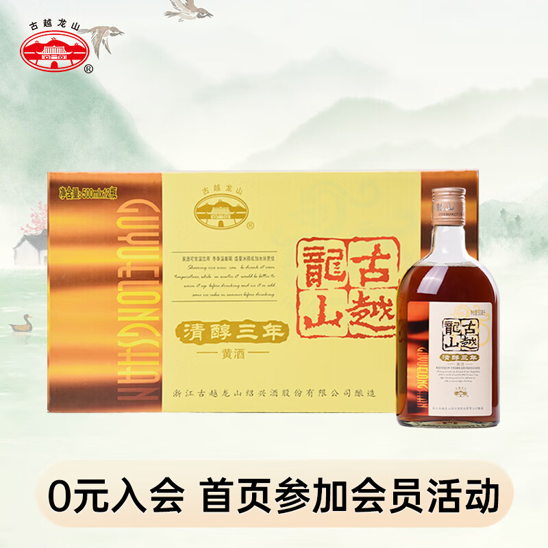 古越龙山 清醇三年 传统型半甜 绍兴 黄酒 500ml*12瓶 整箱装价格:108.00元!