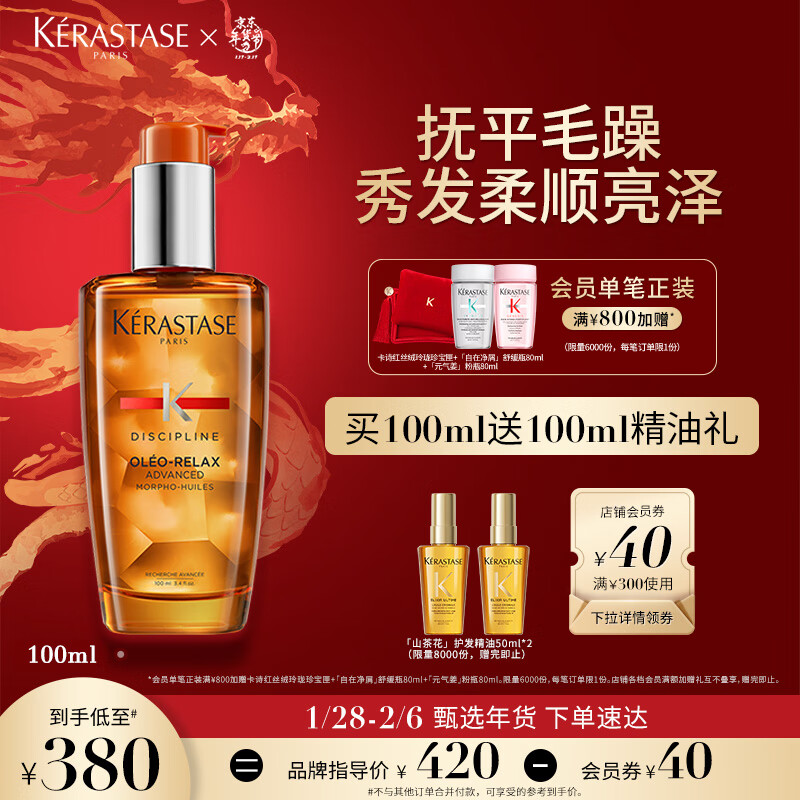 卡诗奥丽柔顺护发精油100ml柔顺亮泽沙发护发改善毛躁分叉价格:420.00元!