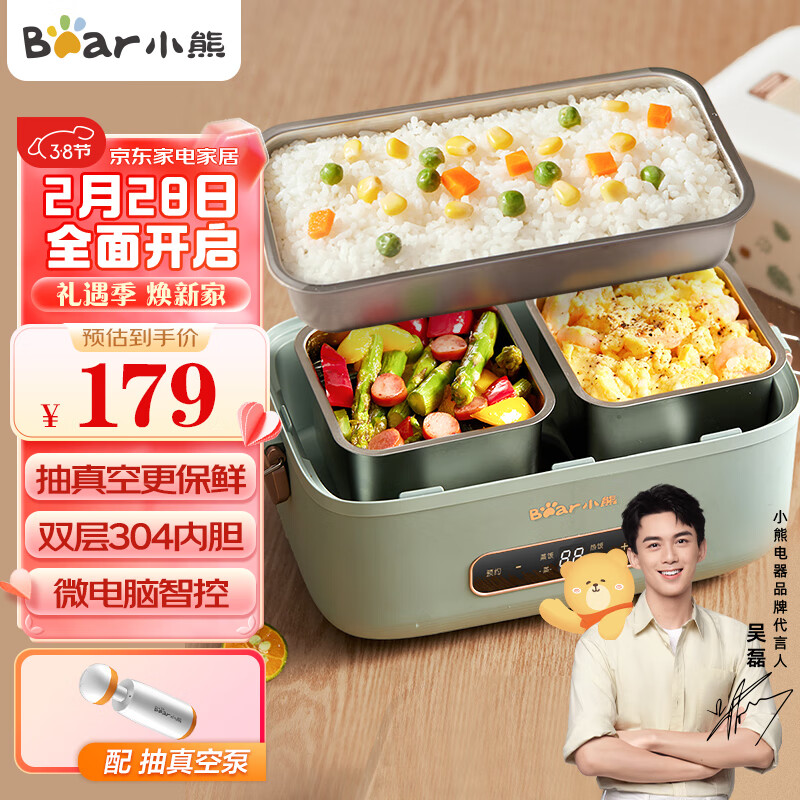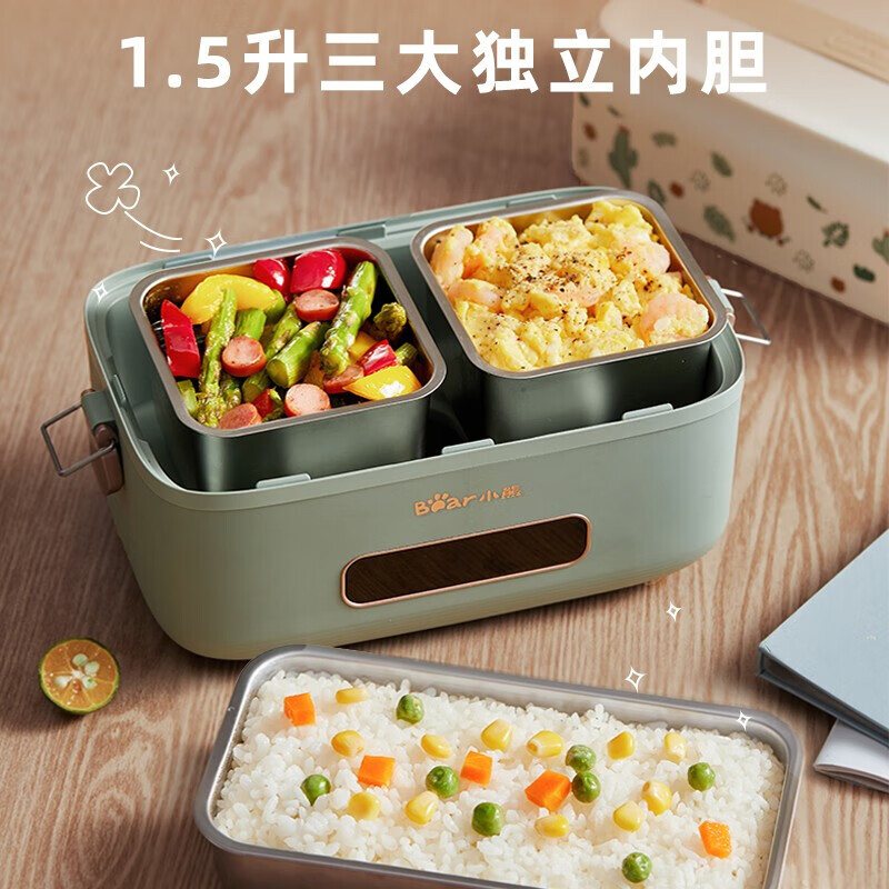 小熊(Bear) 电热饭盒插电式保温饭盒便携式多功能加热饭盒热饭神器双层1.5L不锈钢内胆插电饭盒上班族神器 DFH-B15Q1 1.5L价格:179.00元!