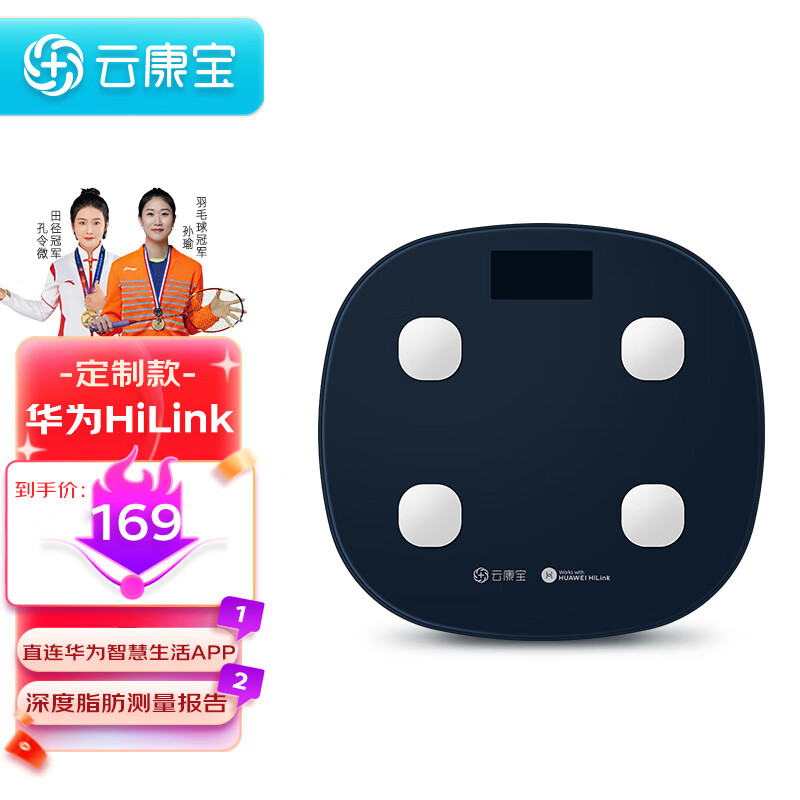 云康宝 智能心率体脂秤 HUAWEI Hilink联合设计 电子秤体重秤家用人体脂肪秤 USB充电款 黑色价格:199.00元!