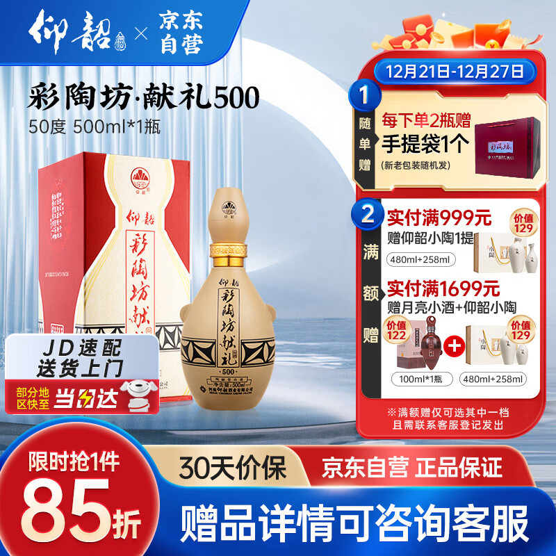 仰韶彩陶坊 献礼500 白酒 50度 500ml 单瓶装 送礼自饮纯粮 口粮白酒价格:76.00元!