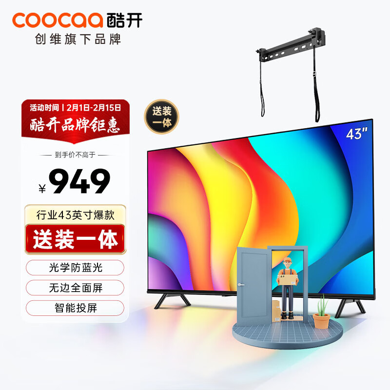 酷开 创维 P31 43英寸电视 送装一体 全高清超薄 金属屏 护眼防蓝光 智能平板游戏液晶电视机43P31价格:949.00元!