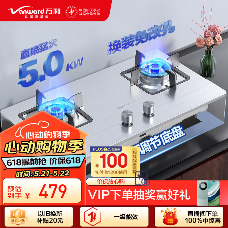 万和(Vanward)燃气灶双灶 天然气灶具5.0kW家用猛火灶台 不锈钢面板台嵌两用 可调节底盘 B7B53天然气价格:478.00元!